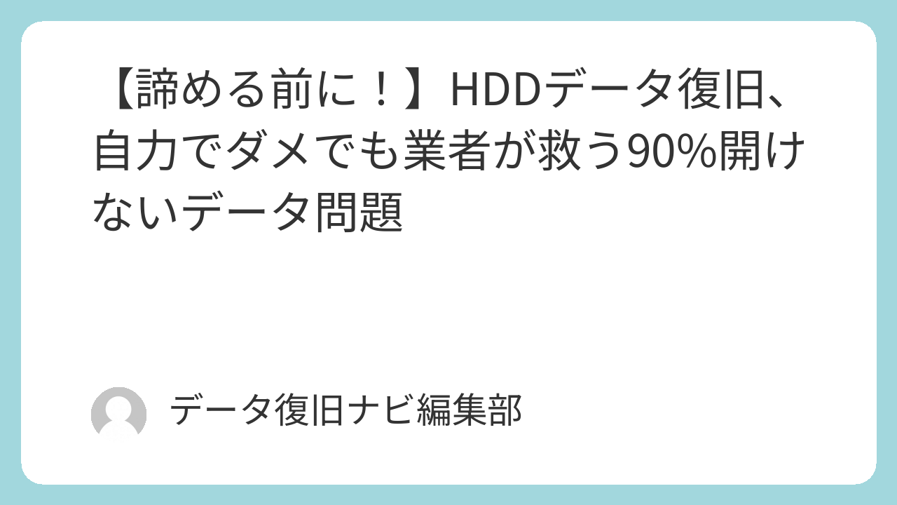 これらの状況から判断すると、あなたのHDDに保存されていた大切なデータは、プロのHDDデータ復旧業者の手によって、高い確率で取り戻せる可能性があります。諦める前に、まずは専門家への相談を強くお勧めします。
