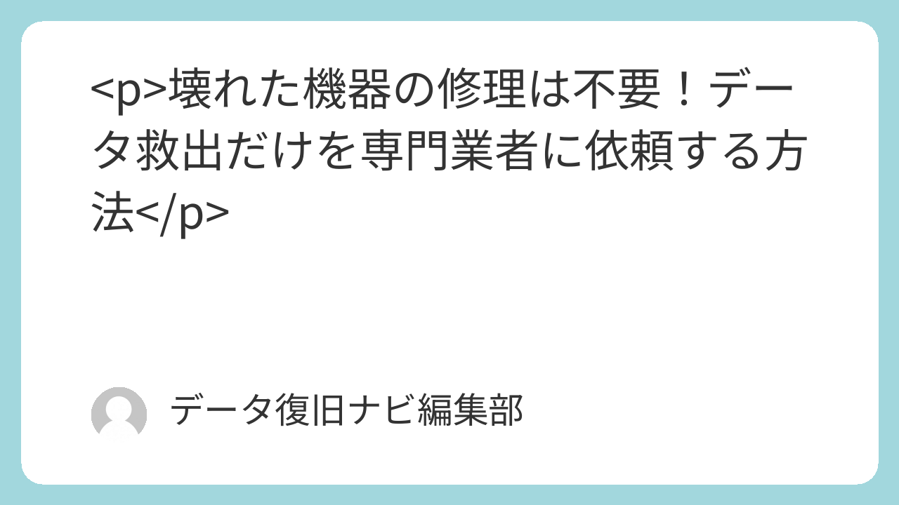 だからこそ、あなたは「修理はしたくないけど、データだけは助けたい」と強く願っているのですね。