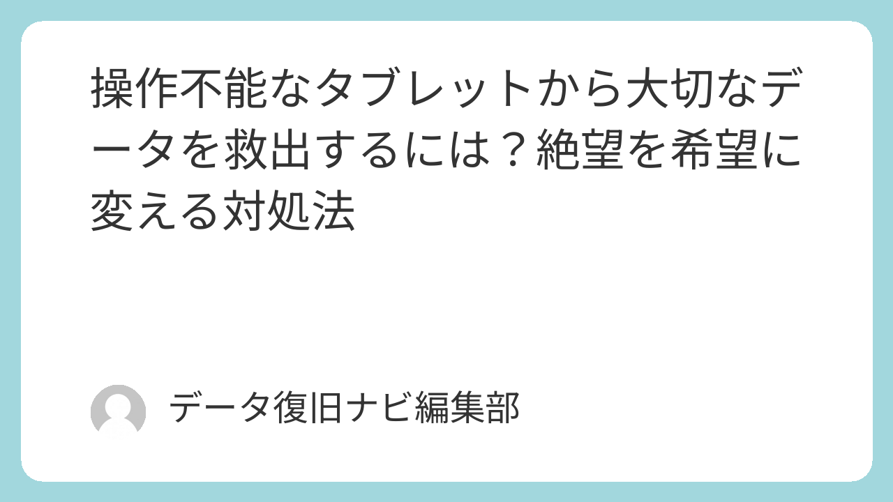 大切な思い出が詰まった、愛着のあるタブレットが動かなくなってしまった…。画面をいくら触っても反応しない、勝手に文字が入力されてロック解除もできない、電源は入るのに手の施しようがない。そんな絶望的な状況に直面し、「もうデータは諦めるしかないのかな…」と途方に暮れているあなたへ。