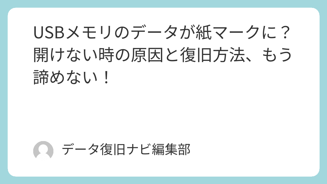 USBメモリのデータが突然紙マークになったり、文字化けして開けなくなったりするのは、本当に心臓が止まるような出来事です。大切な思い出の写真や、懸命に作った仕事の資料が、一瞬にして失われたかのように見えて、絶望の淵に立たされる気持ち、よく分かります。