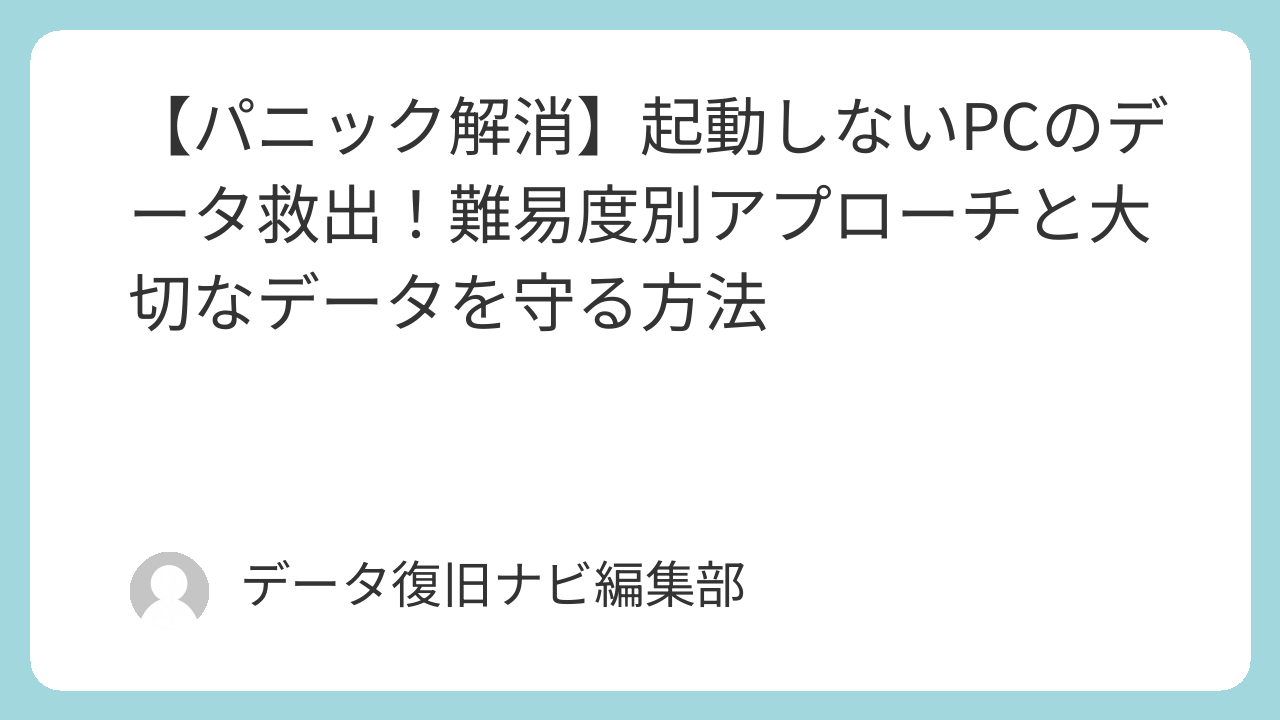 パソコンが起動しなくなった時、私たちは「全てを失った」と感じがちです。しかし、この記事を読んでくださったあなたは、もう一人ではありません。データの救出には様々な難易度があり、それぞれに適切な対処法があることを知りました。