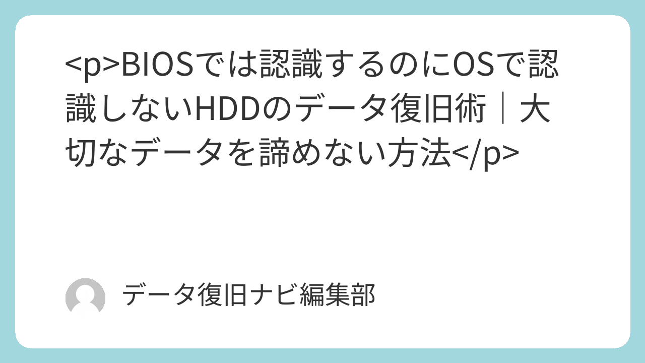 BIOSでは認識するのにOSで認識しないHDDのデータ復旧術|大切なデータを諦めない方法
