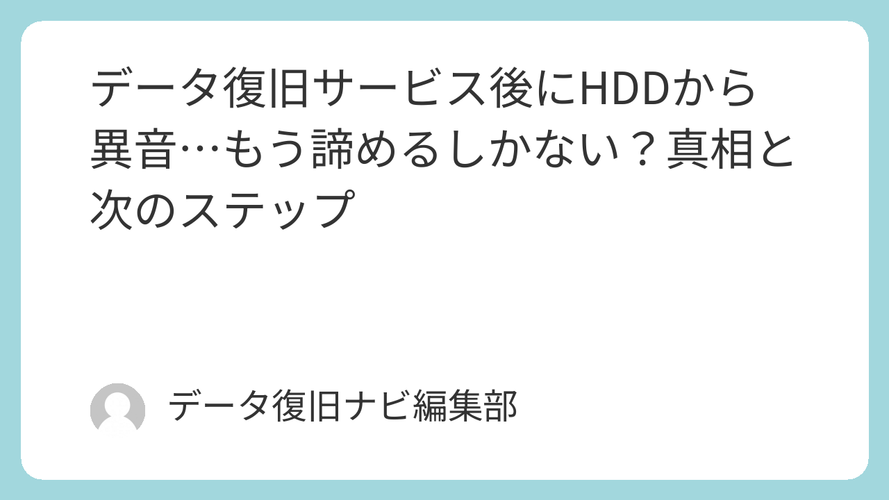 あなたのHDDがデータ復旧サービスから戻ってきても異音が続くということは、残念ながら、そのHDDの物理的な問題が完全に解決されていないか、あるいはデータ復旧が非常に困難なレベルの損傷が残っている可能性が高いことを示しています。