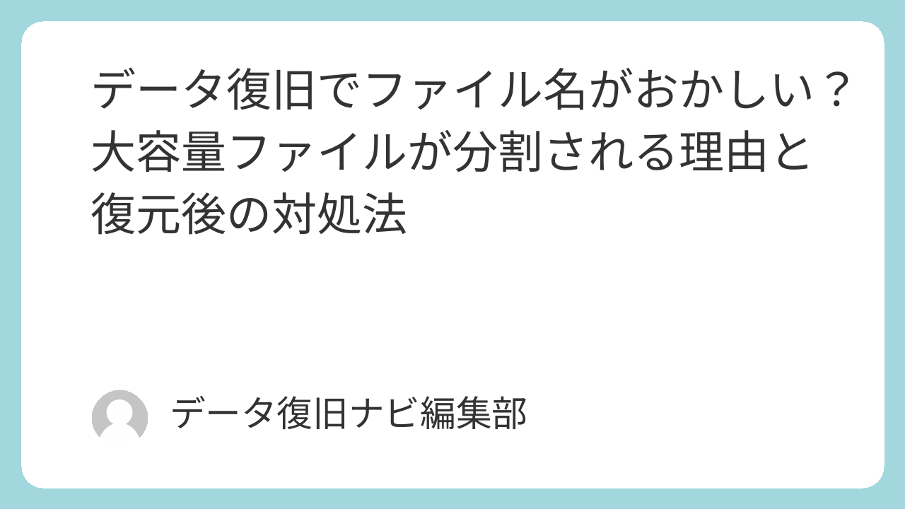 大切に保存していたデータが、突然アクセスできなくなってしまった。焦る気持ちを抑えながら、データ復旧ソフトを使って復元を試みたものの、復元されたファイルのファイル名が不明瞭だったり、大容量ファイルが不自然に分割されてしまったりして、途方に暮れていませんか?