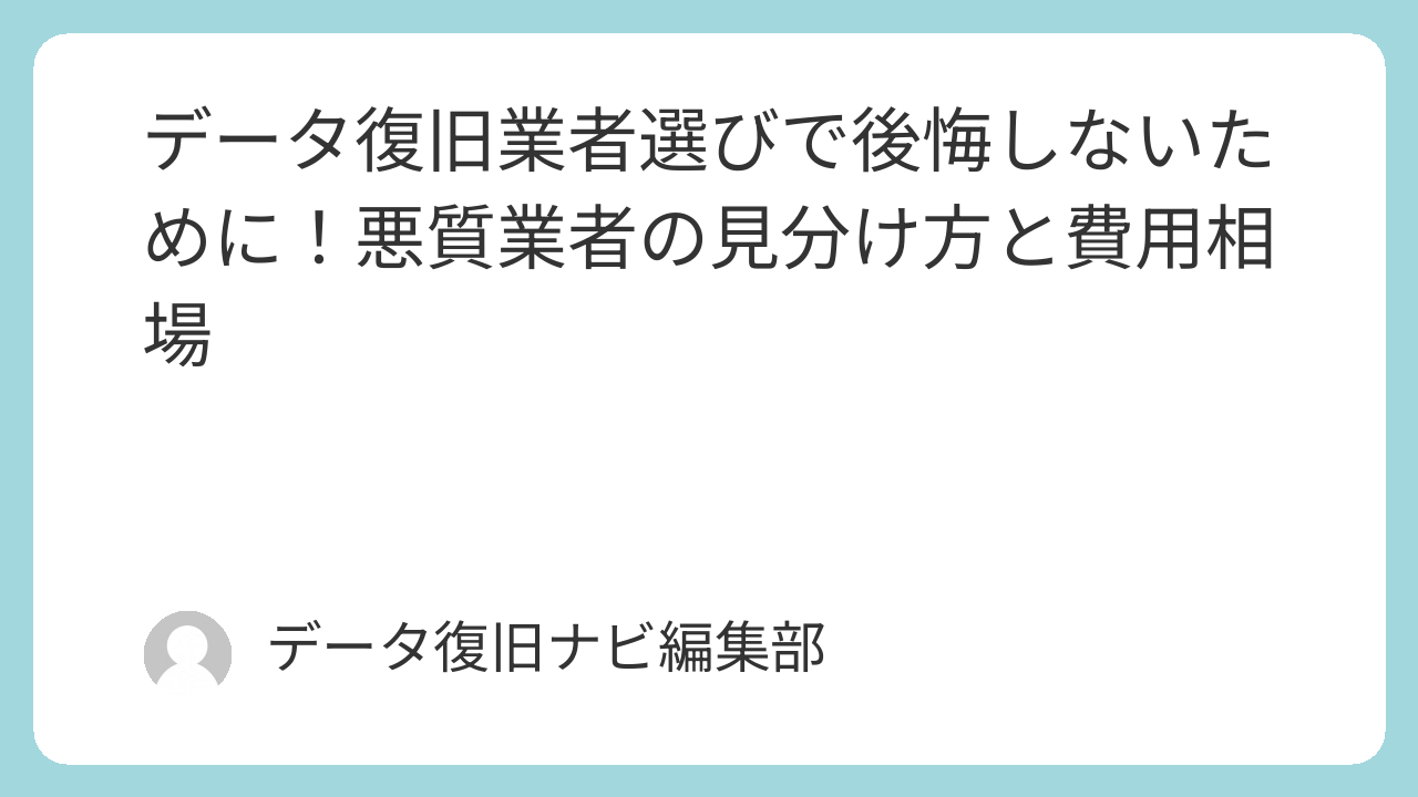 この記事でご紹介したデータ復旧業者の選び方、悪質業者の見分け方、そして費用相場の知識は、あなたにとっての強力な武器となるはずです。