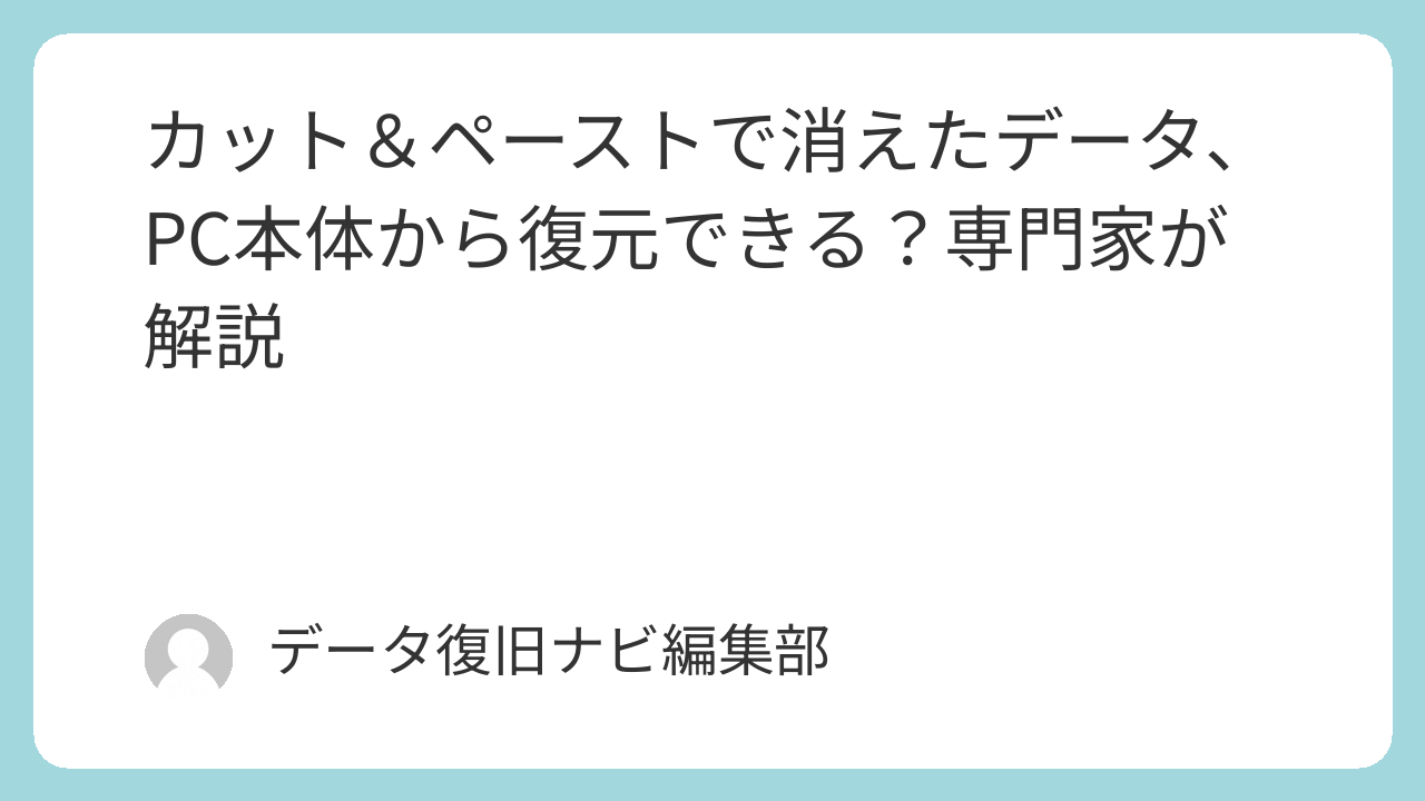 特に、「カット&ペースト(切り取り&貼り付け)」でファイルを移動した後、移動先のメディアをなくしてしまった、あるいは壊してしまったという経験を持つ方は少なくありません。「もうPC本体にはデータが残っていないから、どうすることもできない」と諦めかけている方もいらっしゃるかもしれませんね。