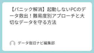「PCが起動しない…」「大切なデータが消えてしまうかもしれない…」突然のPCトラブルに直面し、今、あなたは深い不安と焦りを感じているのではないでしょうか。写真や音楽、仕事で作成した大切な文書など、PCの中にしか残っていないデータがたくさんあ...